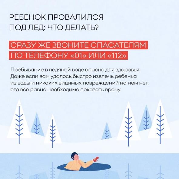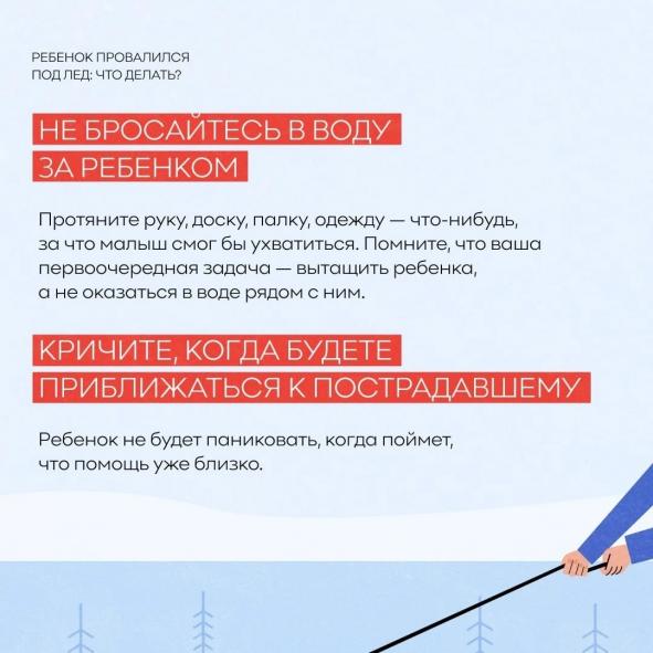 ❗️ Помните: выходить на него очень опасно. Что делать, если ребенок провалился в холодную воду, смотрите в карточках.