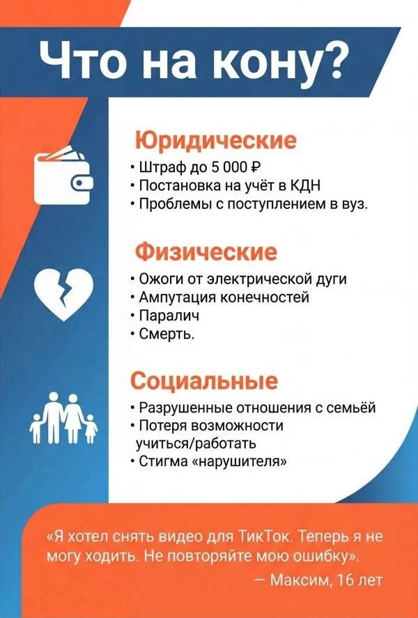 Опасности: Высокое напряжение (до 27500 вольт), падение с поезда, риск затягивания под колеса.