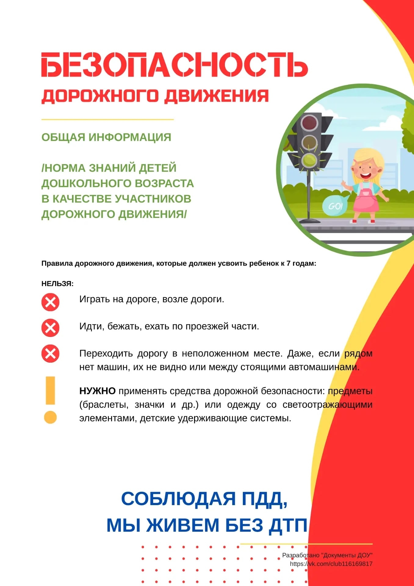 В этих условиях, опираясь на возможности дошкольного детства, особенно актуально проводить работу по обучению правилам безопасного поведения ребенка на улицах и дорогах.