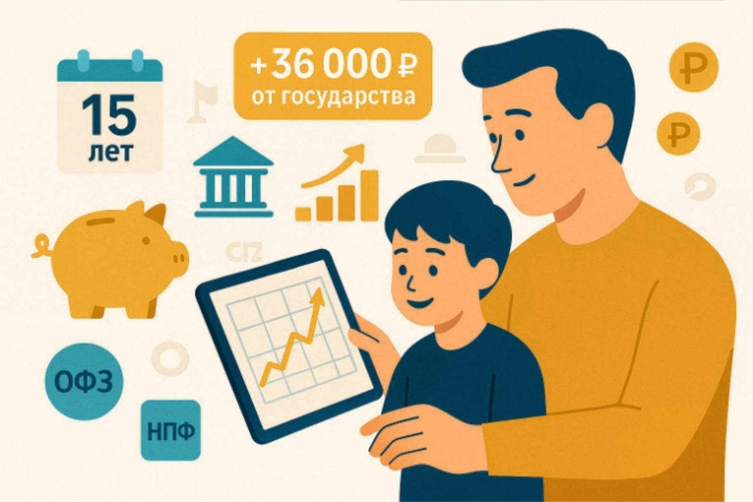 Вы вносите от 2 000 до 36 000 ₽ в год на свой пенсионный счёт (в НПФ или управляющую компанию) не более 360 000 за 10 лет (с момента уплаты взносов), государство удваивает ваш взнос — до 36 000 ₽ в год!*