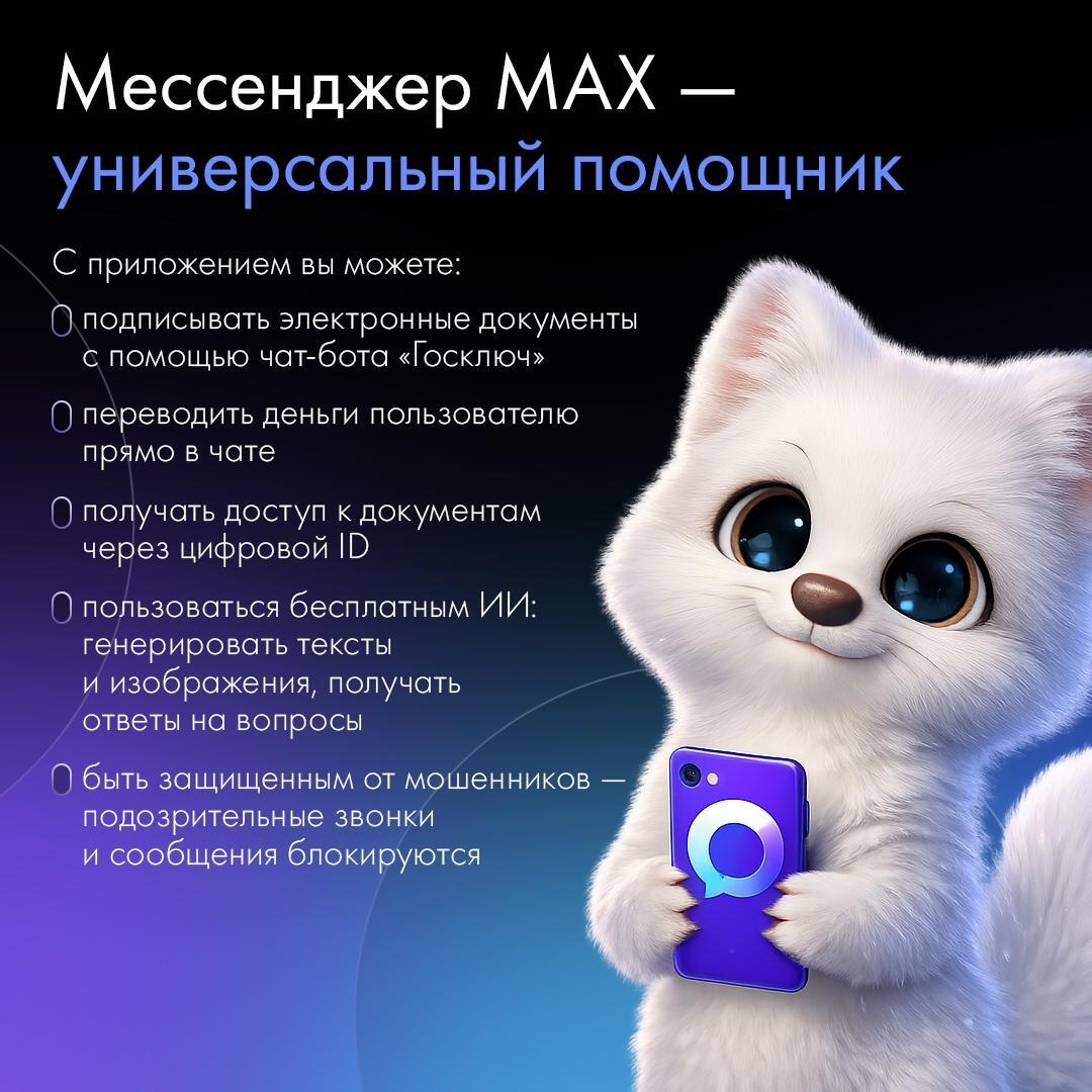 MAX — ваш надежный союзник в повседневной жизни! Приложение объединяет полезные сервисы для решения ежедневных задач и мессенджер для комфортного общения. Как именно MAX упрощает жизнь? Смотрите в карточке! Будьте в курсе новостей!
